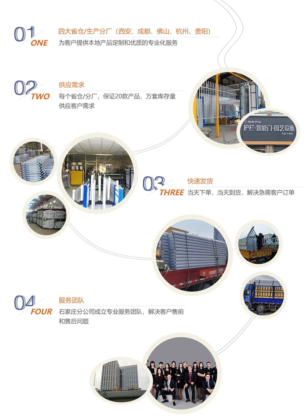 安平縣勝威金屬絲網制造有限公司創始于2005年,是防護柵欄市場的主要供應商之一,主要生產市政類,鋅鋼類,圍墻類,草坪類等?!鞍踩?、時尚、靠譜”是勝威的做事理念。公司堅持“以用戶為中心,為員工伙伴提供機會”為使命。